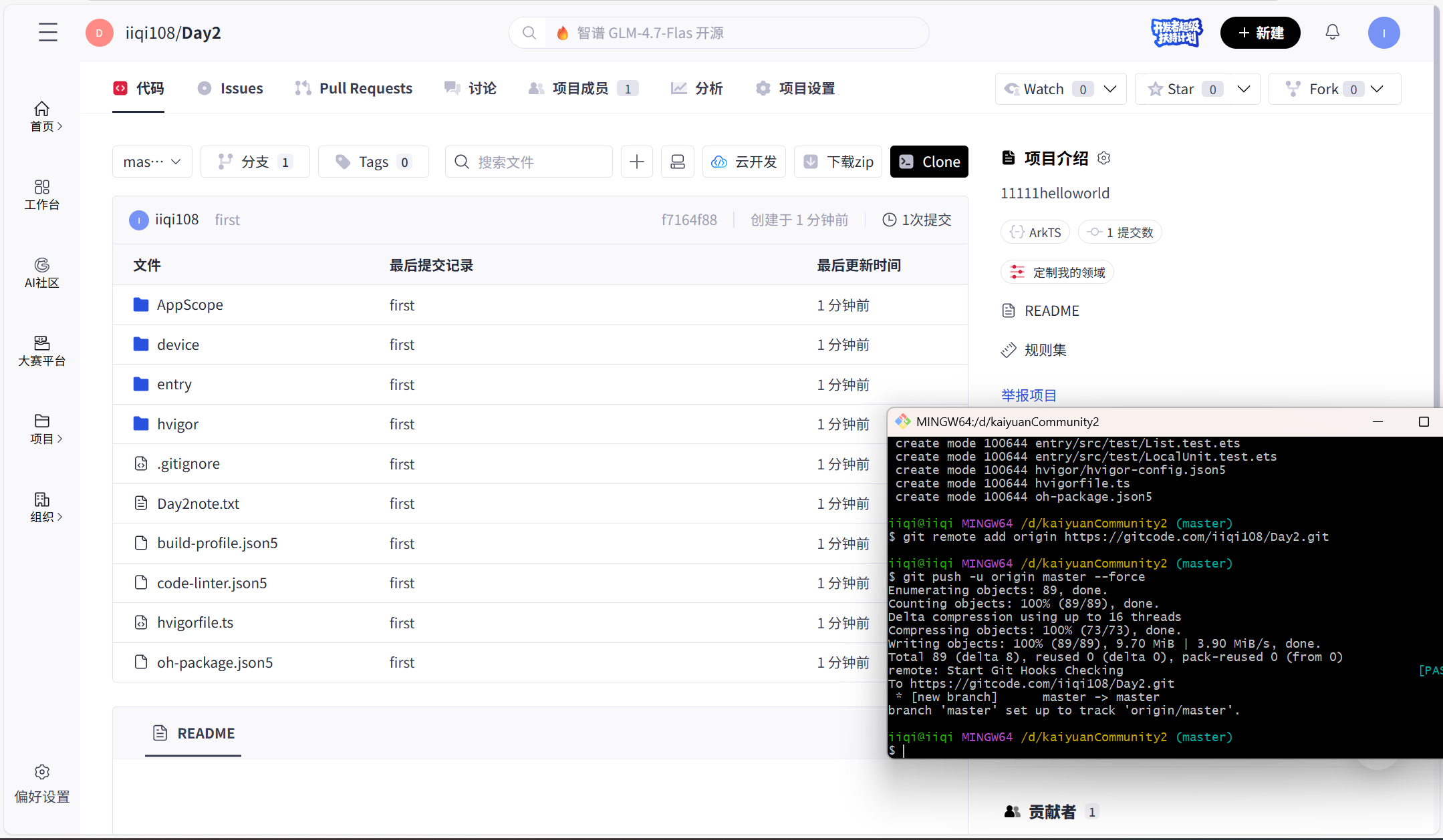 开源鸿蒙跨平台开发环境搭建、多终端工程创建运行、代码提交至AtomGit平台自建公开仓库全流程落地