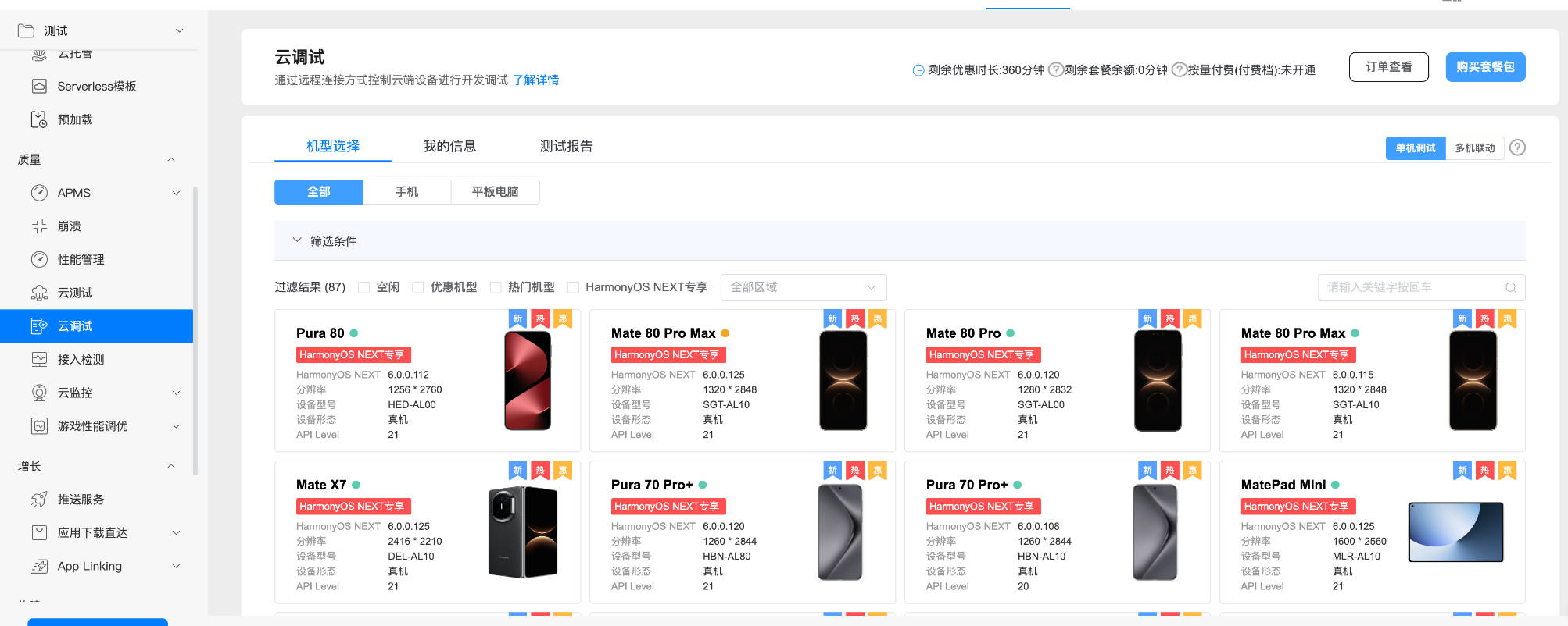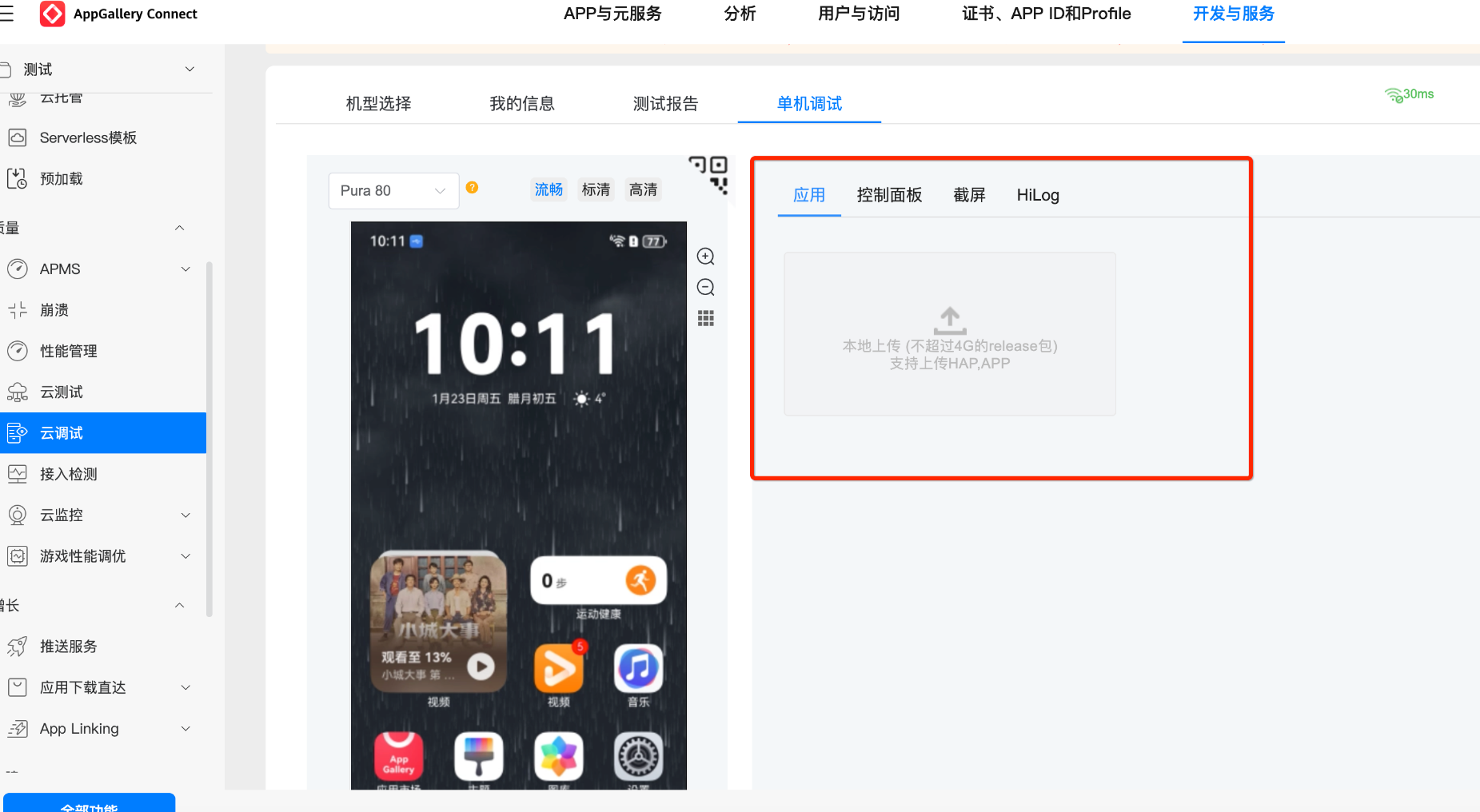 1、打开华为官方的在线云调试https://developer.huawei.com/consumer/cn/service/josp/agc/index.html#/myProject/101653523863213144/9249519184596051206