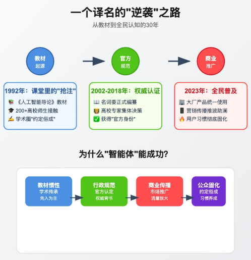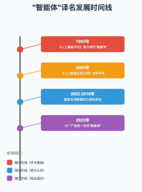 到了2018年,全国科技名词委正式确认"智能体"是规范译名,从学术圈约定俗成,变成了国家认证的"正规军"(来自《计算机科学技术名词》第三版)。