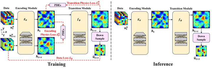 则分别用于约束编码器和预测器的物理一致性。具体来说,PDE loss可以表示为: