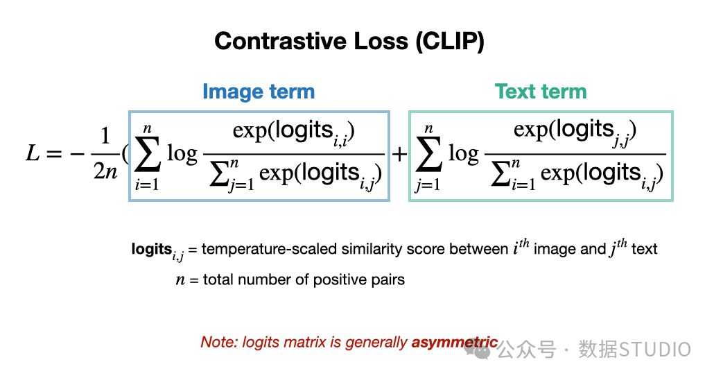 - 它通过一种特殊的损失函数同时最大化正对相似性并最小化负对相似性,如 CLIP所示。