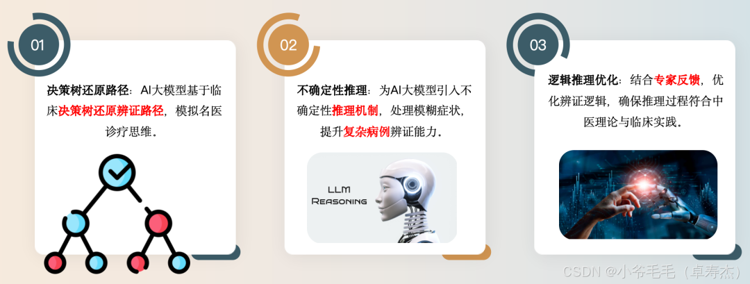 - 不确定性推理 为AI大模型引入不确定性推理机制,处理模糊症状,提升复杂病例辨证能力。
