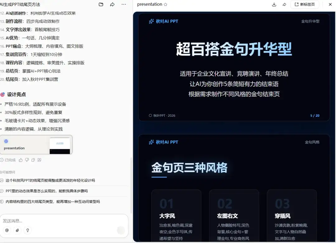 2026 年,好用的 AI 工具 已经渗透到了各种极其细分的场景。除了红鸦 AI 这类专门做图文的,还有很多“效率外挂”。 ### AI 汇报:打工人的 PPT 救星 以前做 PPT 找模板半小时,填内容两小时。现在的 AI 逻辑是:你给个大纲,它自动拆解目录、填充文本,甚至直接排版出图。