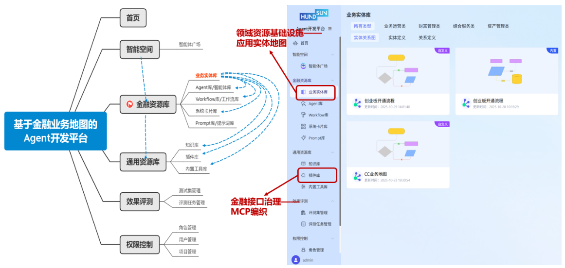 然而,本文需要特别指出的是,应用实体地图最重要的领域是驱动完全不同于通用工具的金融垂域智能体平台的产生。实体地图增强的金融智能体平台,首先将与业务产品一一对应的应用实体地图集合及标准MCP接口模型集合沉淀为平台与生俱来的高价值资产;同时在这些资产的支持下,实现了金融领域复杂、精准的隐式意图识别、有界可信的ReAct动态流程、灵活可变的Workflow,以及任务固化的Slot Box集合等能力,这些金融智能体平台的特有能力形成了通用工具无法覆盖的数智金融科技核心竞争力。