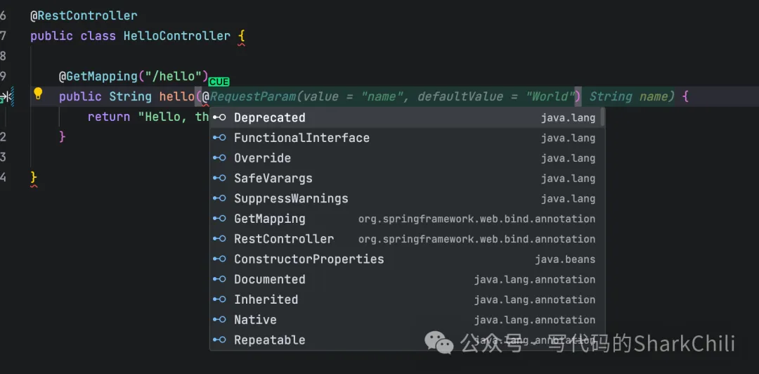 所以在笔者键入@符号后,cue很快就推理出笔者的意图给出name参数,但是看起来还是多了一个defaultValue,没关系,我们tab全量接受后手工调整一下即可: