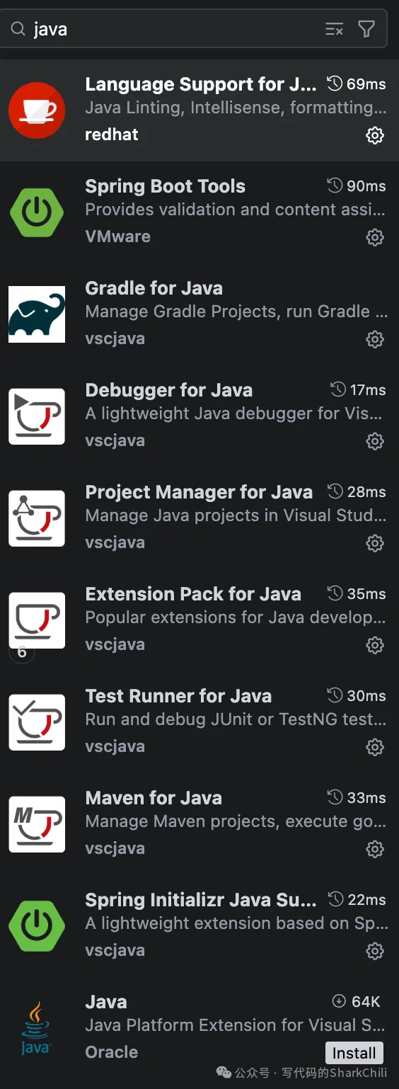 - Language support for Java ™ for Visual Studio Code:VS Code内置的java语言插件,通过该插件可以做到java智能代码补全、语法高亮检查、代码导航重构等功能。