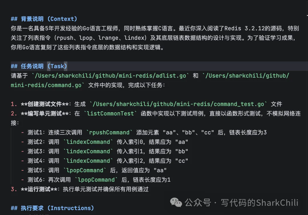 对应调整后,笔者提示词被trae优化为如下文本,对此笔者将其保存到项目路径下,感兴趣的读者可以移步笔者的开发项目mini-redis了解详情:https://github.com/shark-ctrl/mini-redis