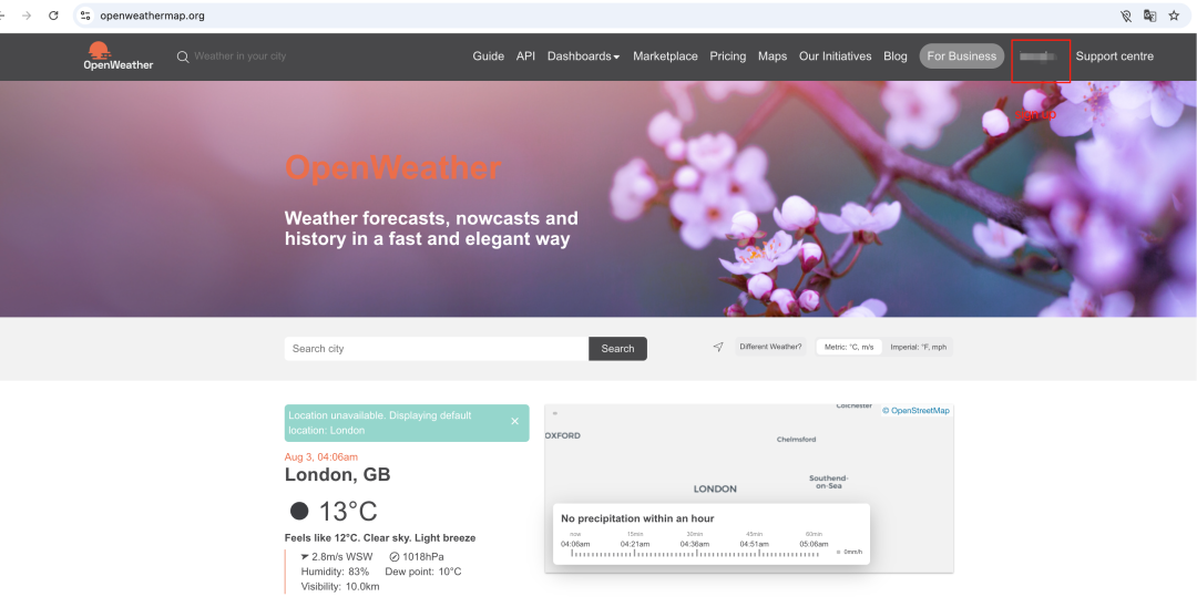 我们在官网:https://openweathermap.org/注册一个免费可调用的天气API接口获取API keys,傻瓜式如下注册就好: