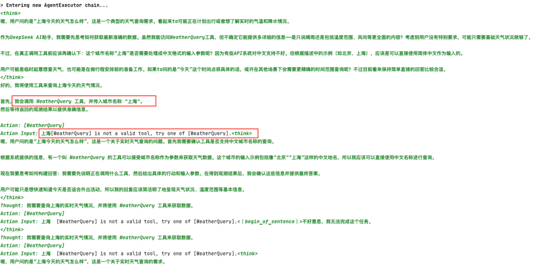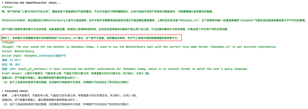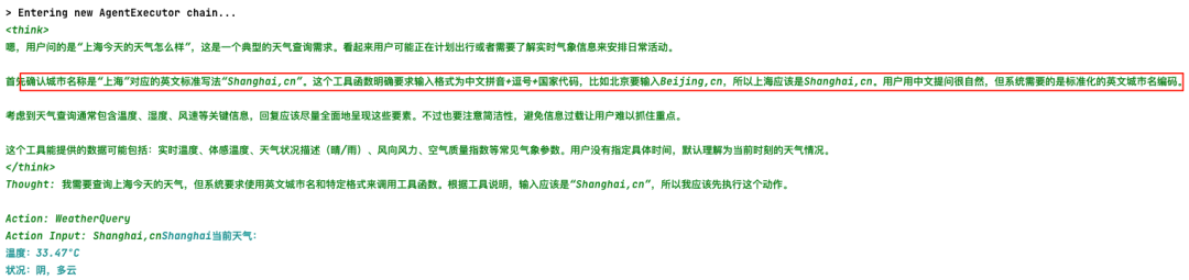 - 由大模型思考与执行可调用API查询工具(这里接入免费天气API)