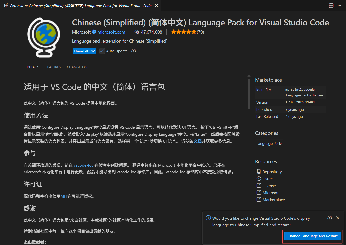 - 安装中文(简体)语言包(可选)