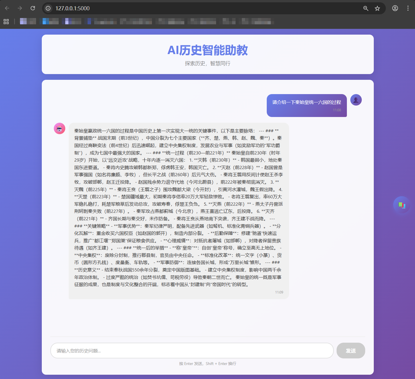 提问测试AI历史智能助教: