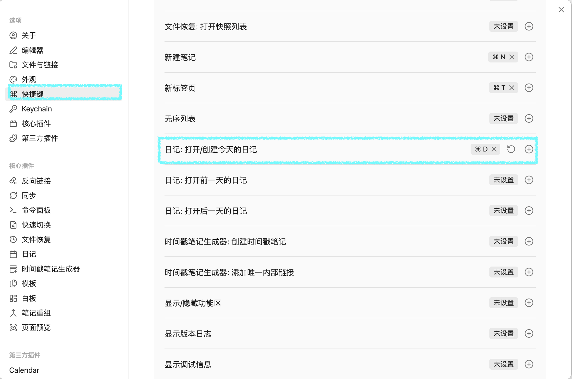 Ctrl+D(Mac是Cmd+D)(需要自己去配置) - 直接创建今天的日记