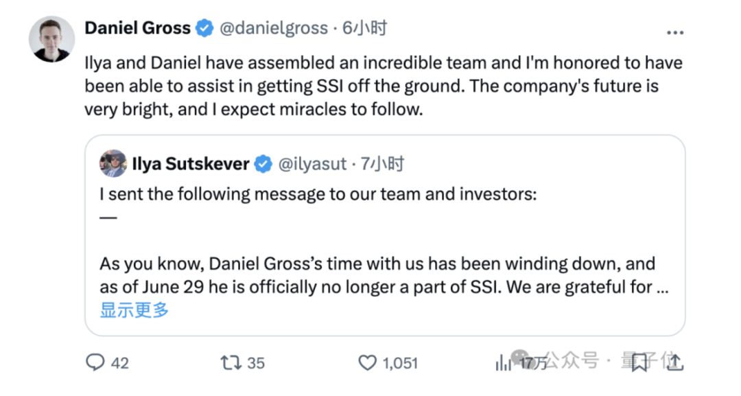 不过在小扎去年的人才争夺战中,他可是一位响当当的人物——加入前曾与Ilya联合创办了SSI。