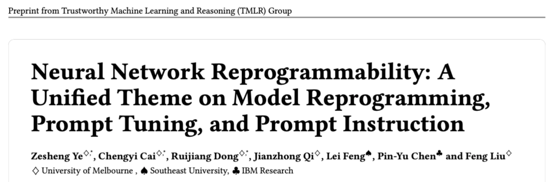 - 论文标题:Neural Network Reprogrammability: A Unified Theme on Model Reprogramming, Prompt Tuning, and Prompt Instruction