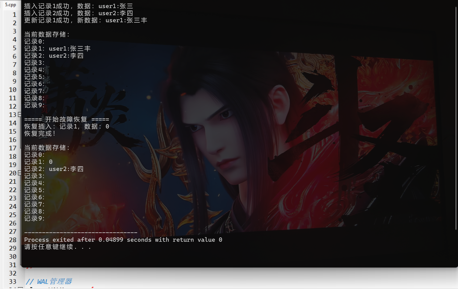 cout << "恢复插入:记录" << record_id << ",数据:" << new_data << endl;