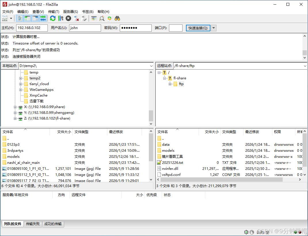 2.在windows上使用FileZilla的软件,登录该ftp服务器