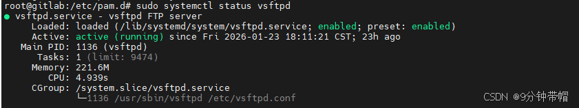 这个Active后面是绿色的active(running),说明ftp服务运行正常。