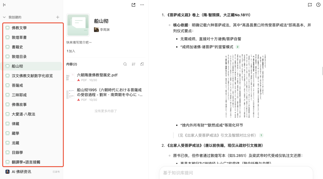 遇到一个新的主题,就建一个专门的知识库,然后上传领域内核心的文献,这时候AI的回答是最精准的。