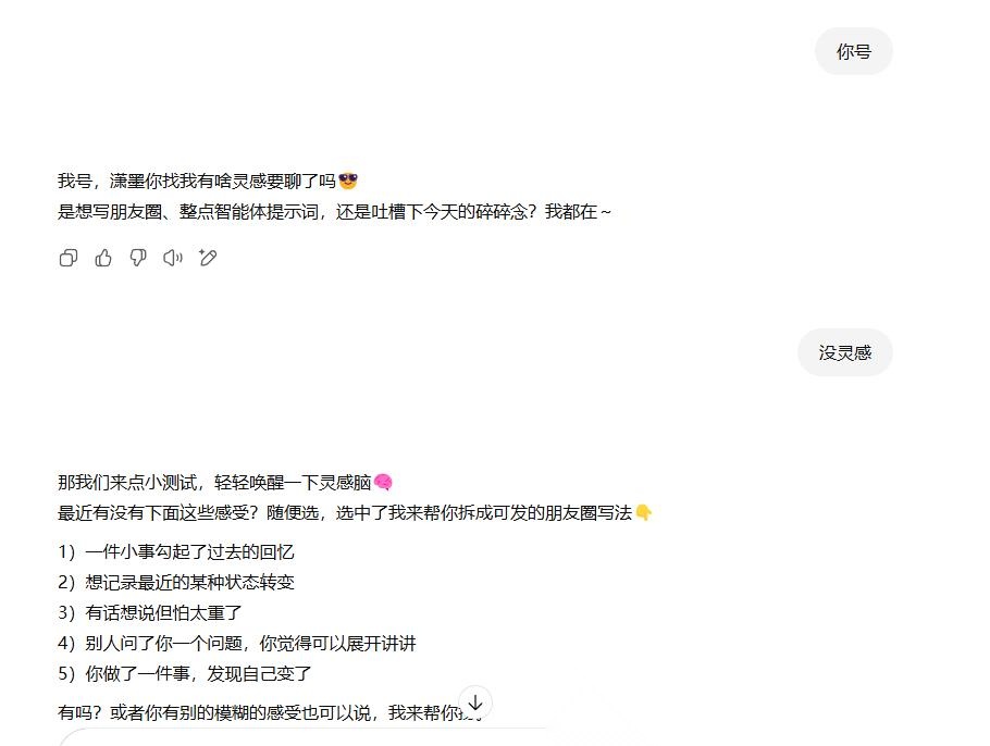 解决方案就是创建一个专属的AI智能体。你可以把你的运营资料、优秀案例整理成它的知识库,并提前设定好它的角色和说话风格。