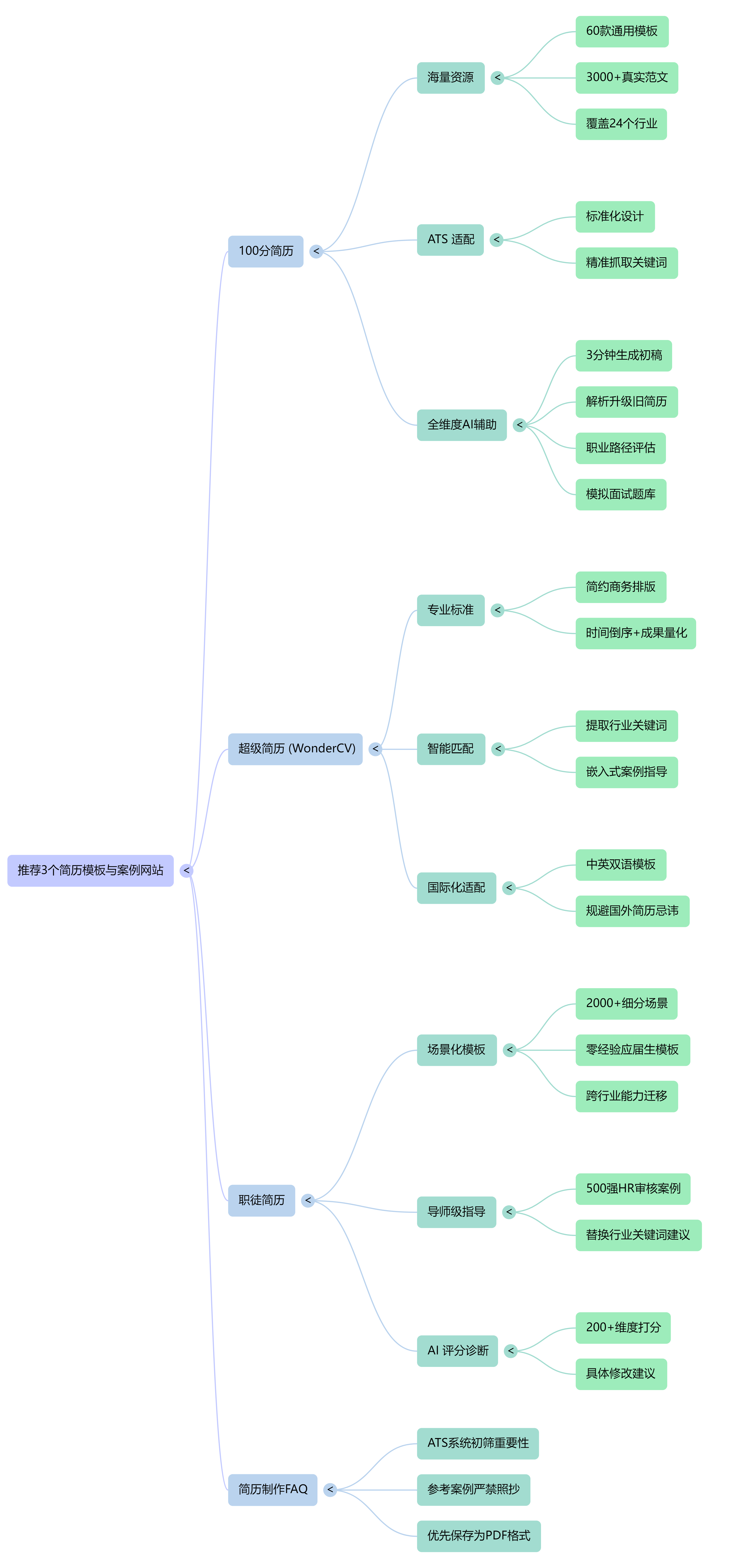 ATS 适配性:很多大公司使用 ATS 系统来初筛简历。100分简历的模板经过标准化设计,严格符合 ATS 的筛选逻辑。这能保证你的关键词(如“用户增长”、“Python”)能被机器精准抓取。
