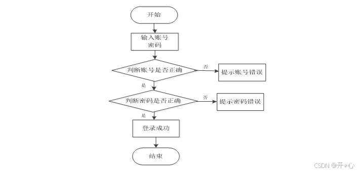 本系统的登录模块,其内部的流程见下图。主要对访问本系统的人员提供的验证信息进行逐个判断,系统面对录入错误的信息会给出提示,比如,提示账号不对,或提示密码不匹配等提示信息。总之,在登录页面填写的所有信息都符合要求,访问者就登录成功了。