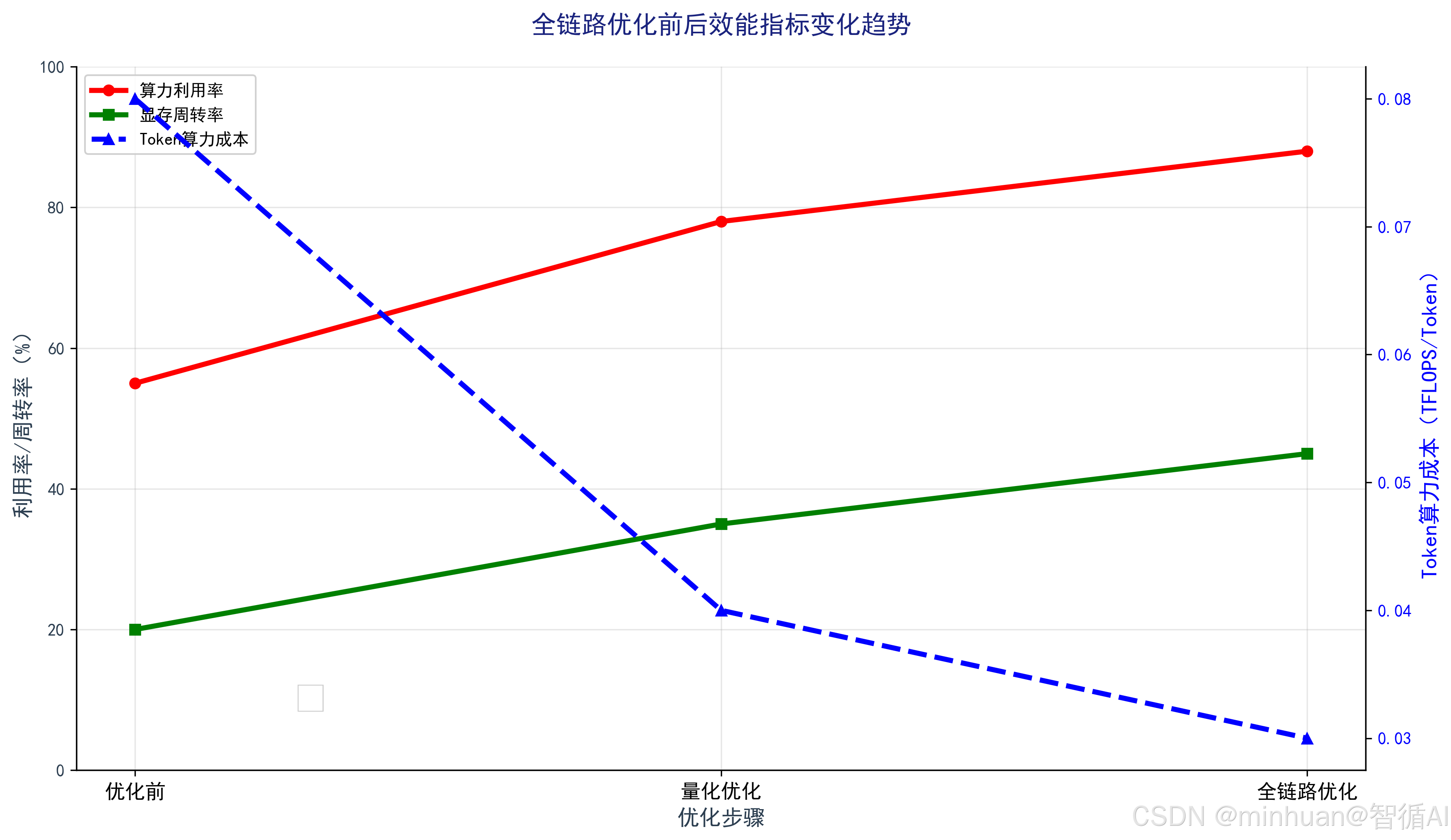 还要记住,优化效果不能凭感觉,算力利用率、显存周转率、Token算力成本这三个指标,是检验优化价值的硬标准。用NVIDIA-smi、PyTorch Profiler这些工具定位瓶颈,再针对性优化,比盲目调参高效得多。