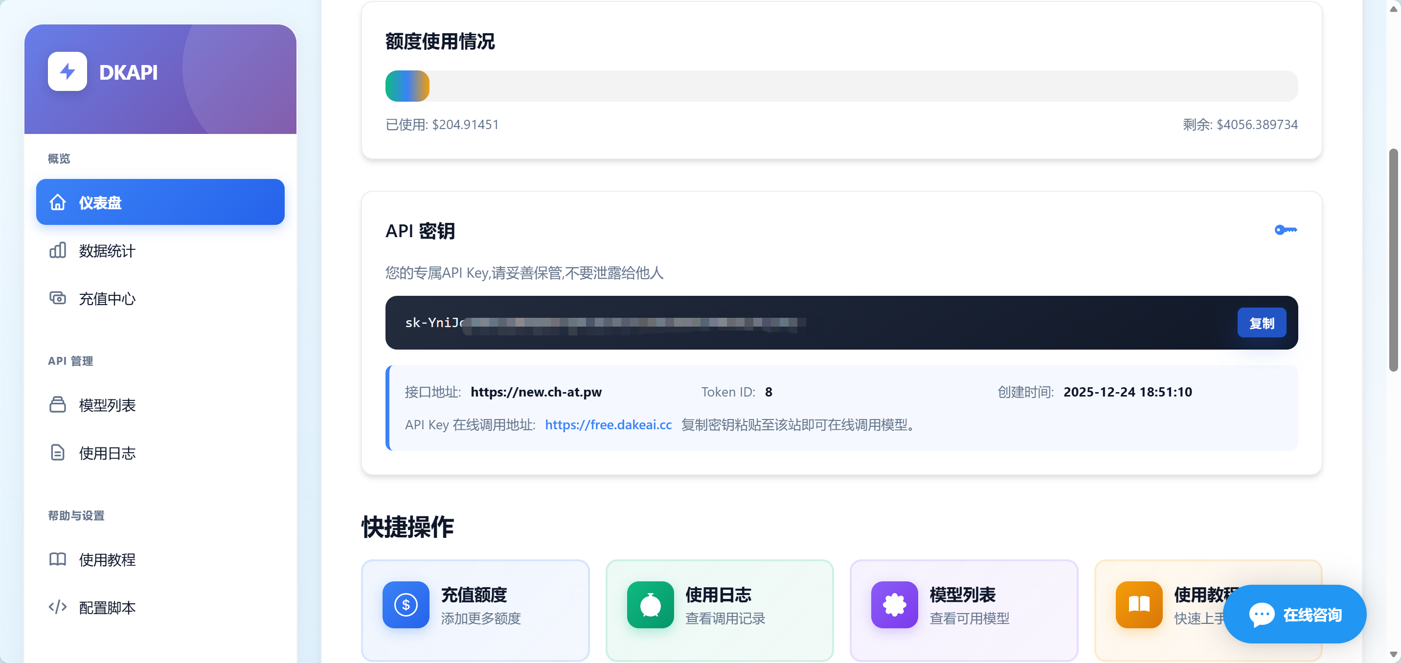 - 使用你获取到的 dkapi API Key