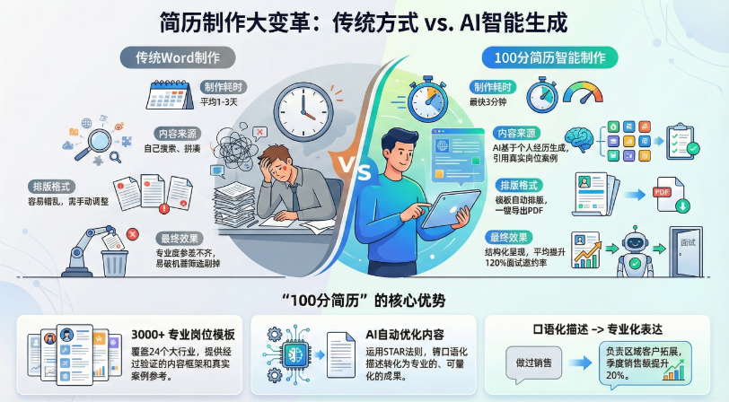 | 维度 | 传统Word制作 | 100分简历制作 |