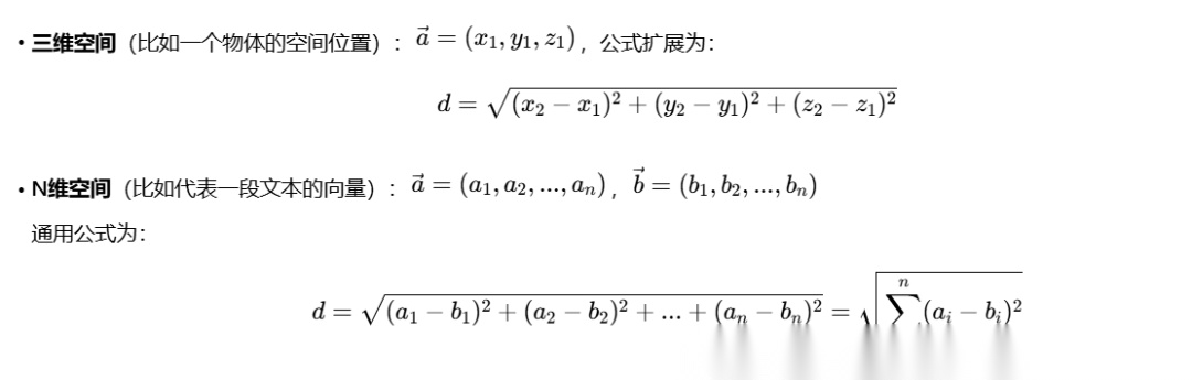 欧氏距离、余弦相似度。这个距离就是两段文字、两个图片的相似度。