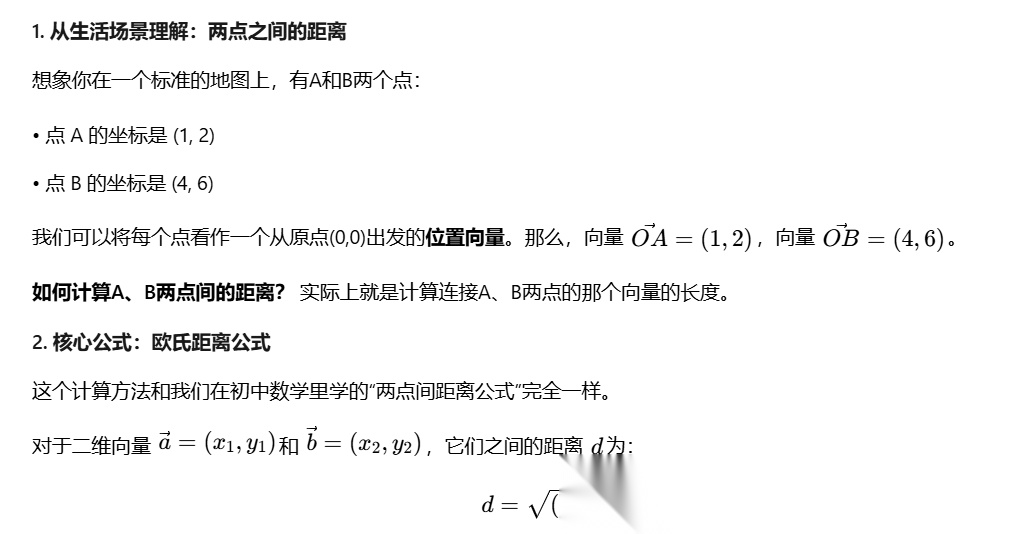 这听起来有点抽象,这其实就是 多维向量 之间的距离。