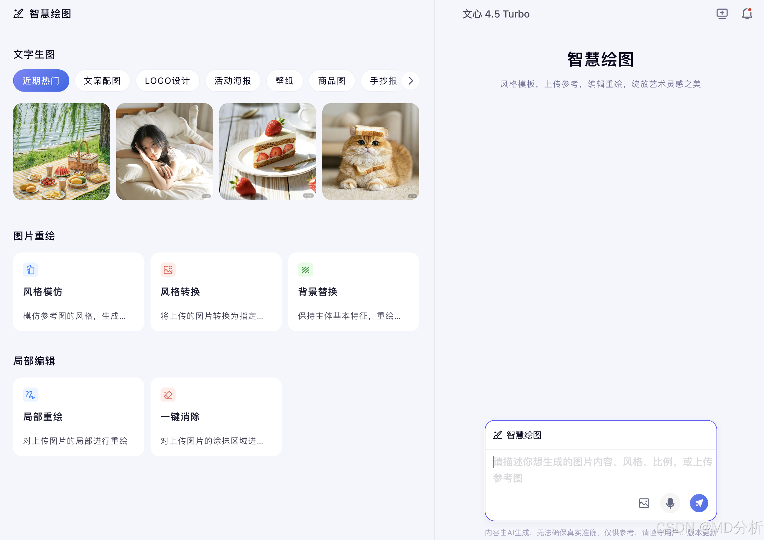 另一款不可忽视的工具是文心一言,它是百度推出的大语言模型“文心大模型”家族的重要一员。文心一言不仅提供对话式AI服务,还配套了强大的AI绘画功能,支持中文风格提示词,涵盖写实、国风、插画、工笔、水墨等多种视觉风格,尤其在传统文化和国风艺术上表现突出。相比豆包更偏娱乐性、轻互动的路线,文心一言更注重多场景、深内容的输出,适合需要生成高质量插画、学术插图或文化类视觉作品的用户。此外,百度也将其图像生成接口整合入百度文库、搜索、百度APP等多个平台,让AIGC绘图能力渗透到内容创作、教育、办公等不同领域。