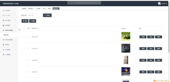 图5-9商品分类管理界面
