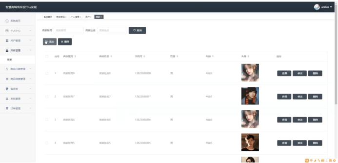 图5-8商家管理界面