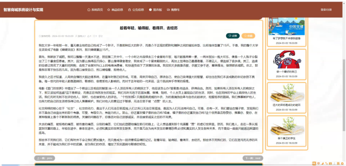 线上购物早已成为日常,但“千人一面”的商品瀑布、滞后的库存同步、割裂的售前售后,依旧让消费者和商家同时抓狂。把“智慧”真正写进商城,而不仅是把柜台搬到网页,成了这次毕业设计的原动力。系统以SpringBoot为骨架、MySQL为仓库、Vue为门面,B/S架构让维护成本直接腰斩;从登录注册到AI推荐,从商品上架到物流签收,全流程在一个界面里跑通。核心功能一览用户侧:首页轮播、商品检索、智能推荐、购物