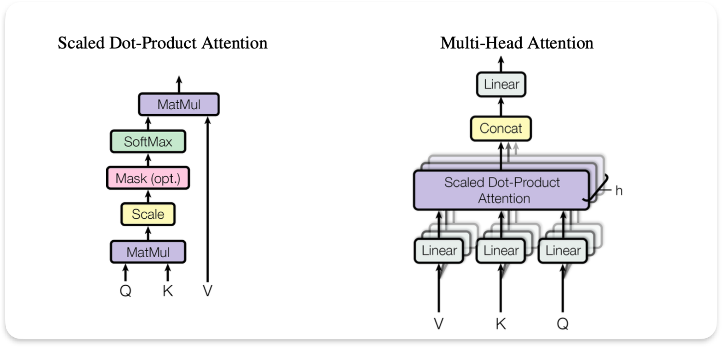- 实现:在 Attention 的 softmax 前,对未来位置加 −∞−∞ (即 mask 掉)