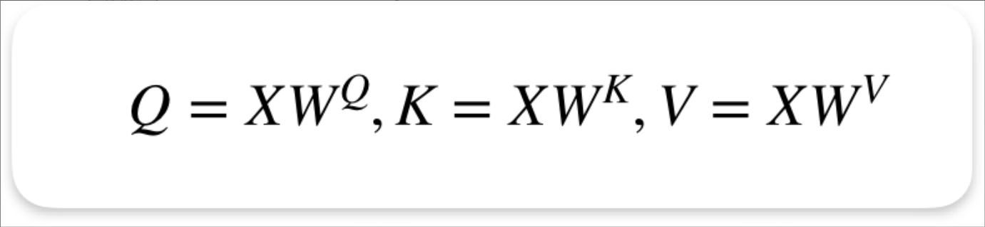 - 对输入线性变换得到 Q, K, V