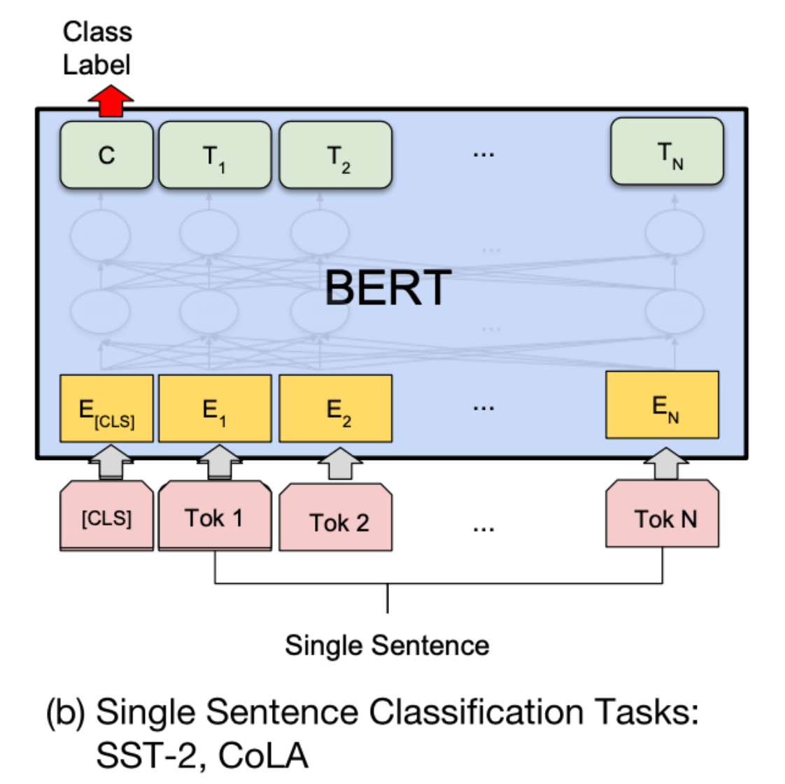 | Token Embeddings(词嵌入张量) | 词表映射;第一个单词 为 [CLS],用于分类 |