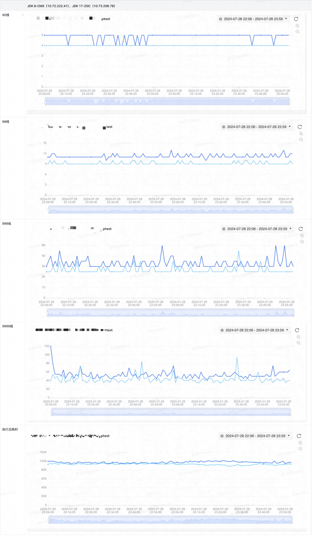 运行15天,JDK11机器长时间不重启三九、四九线会逐渐升高,JDK 17机器较为稳定。