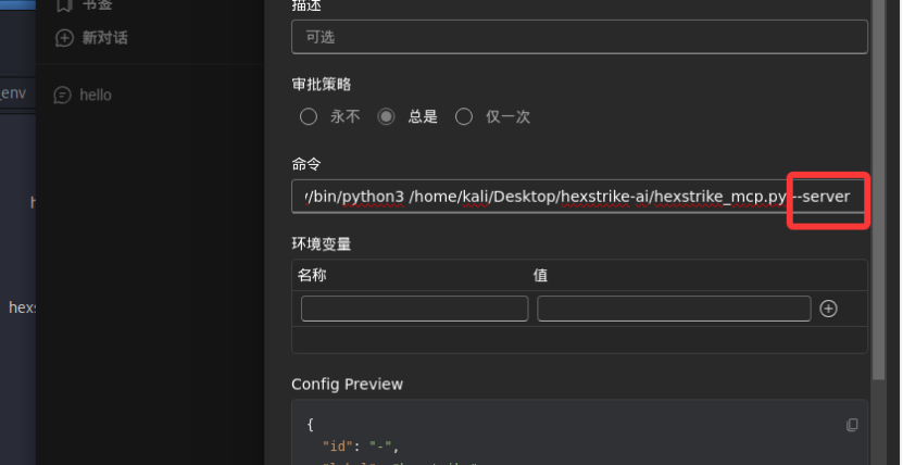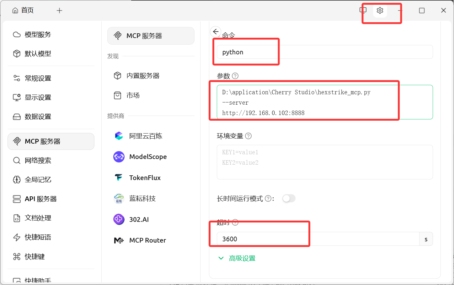 前面已经把hexstrike部署好了,现在只需要把Cherry的MCP设置好,连接上hexstrike客户端即可