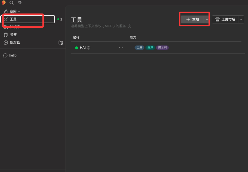 点击下面的锤子,手动添加mcp,到这里就部署完成了