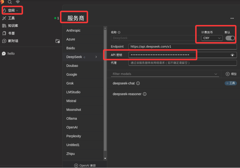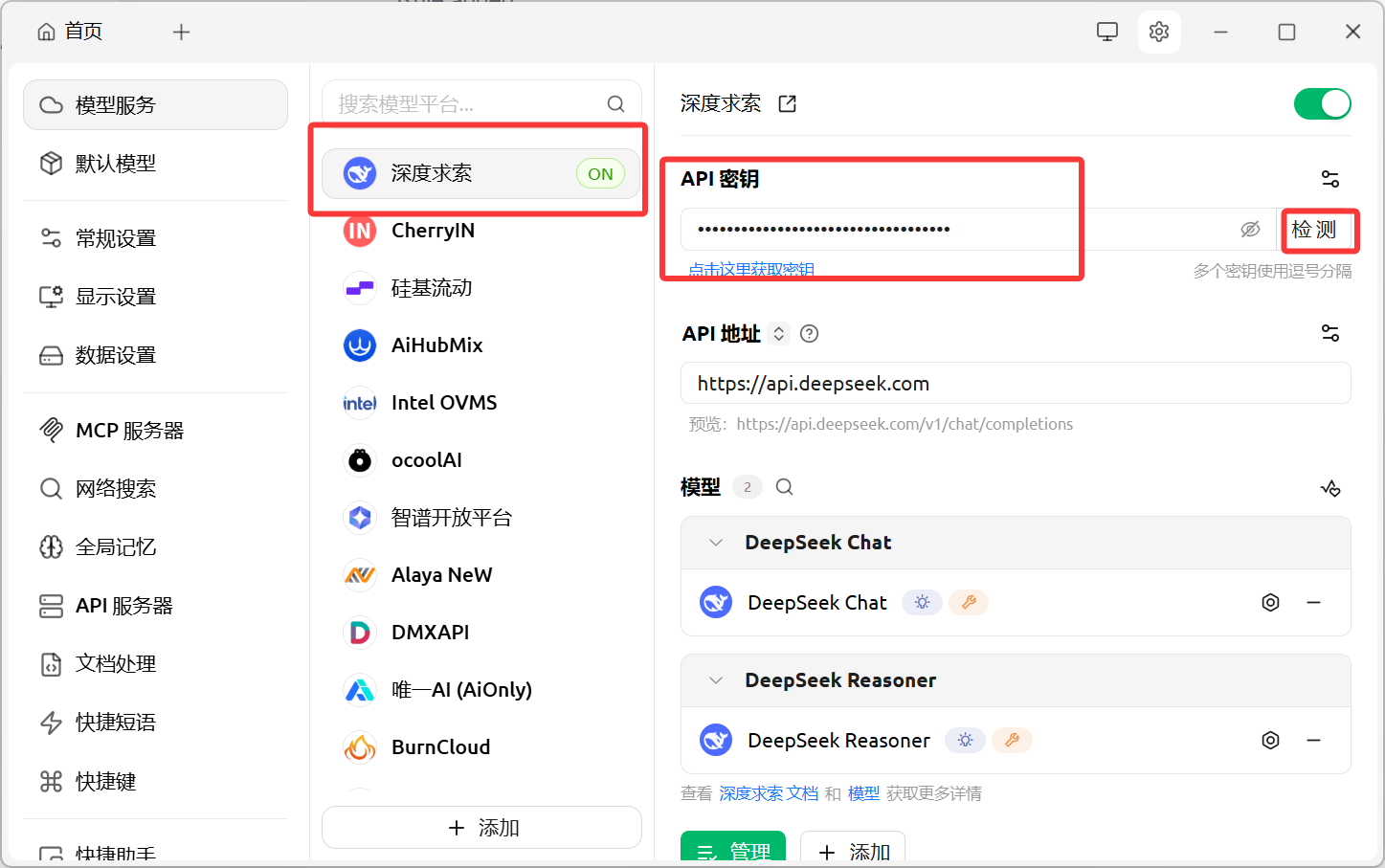 将其他的关闭,选择deep seek就行,API密钥自行去官网获取