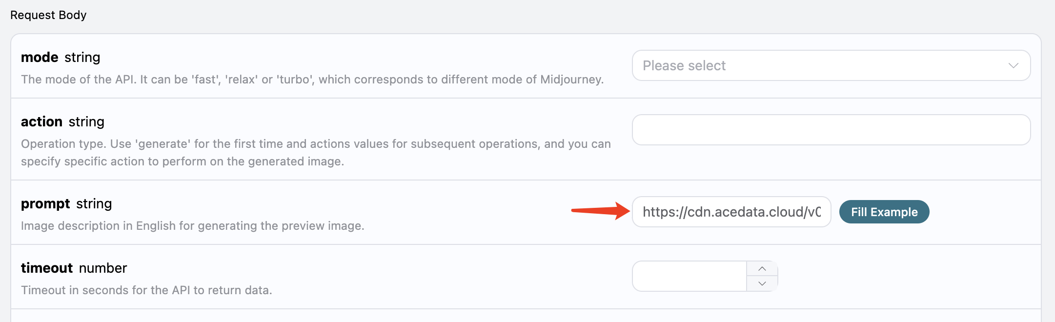 接下来,我们可以设置字段 callback_url 为上述 Webhook URL,同时填入 prompt,如图所示: