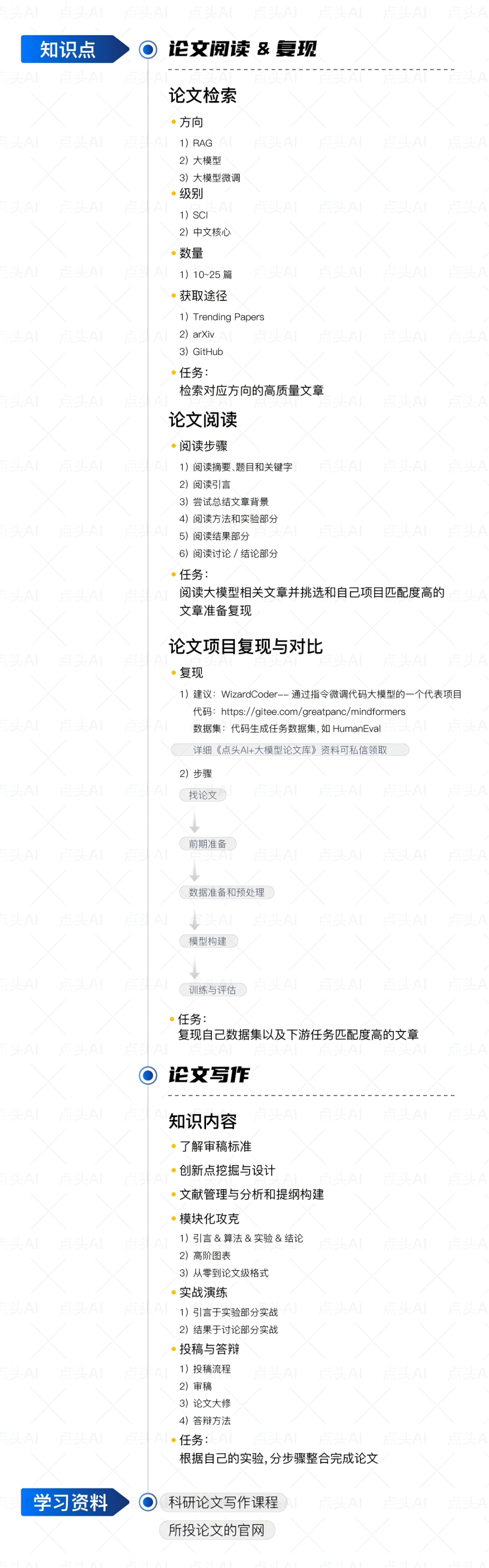 那么今天,小点就来为大家分享一份超级实用的**【大模型微调方向】学习路线**,是由我们点头教研组名师悉心整理的哦~希望能从0到1帮助大家理清学习节奏,真正实现“能落地、会创新”!
