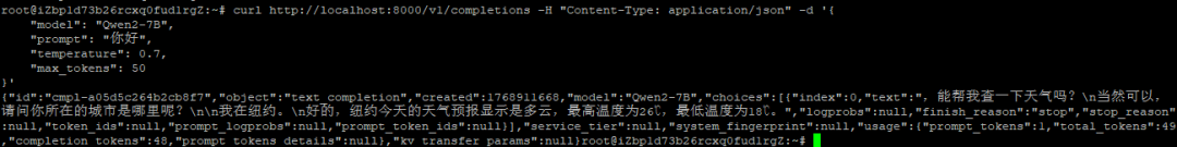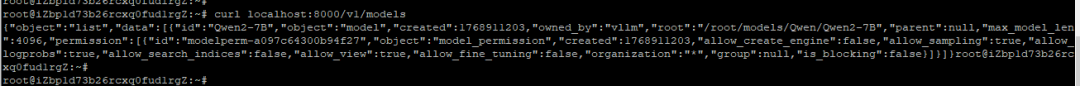 curl localhost:8000/v1/models ##查看模型列表