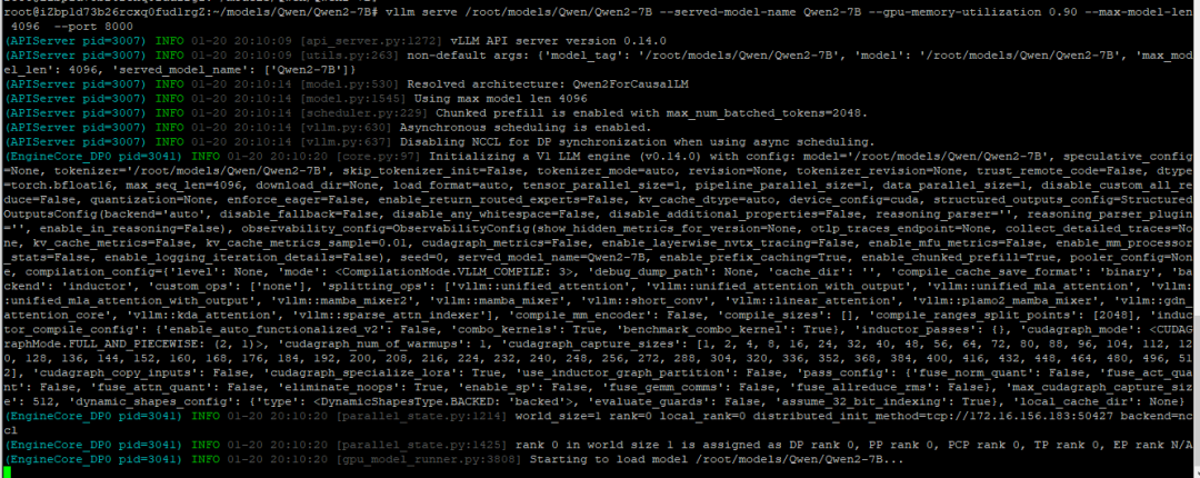vllm serve /root/models/Qwen/Qwen2-7B \ # 指定刚刚下载的模型位置