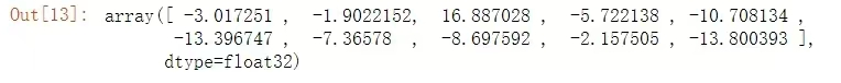 输入一张图片,将会得到一组数,这组代表这张图片上的数字为0~9中每一个数字的几率(并非概率),out数字越大可能性越大。