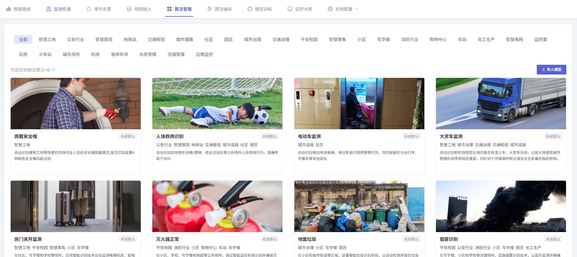 算法导入:支持本地或在线导入算法模型,扩展系统能力