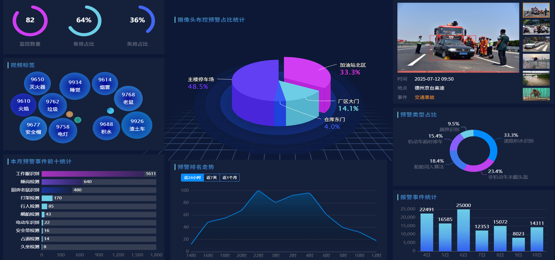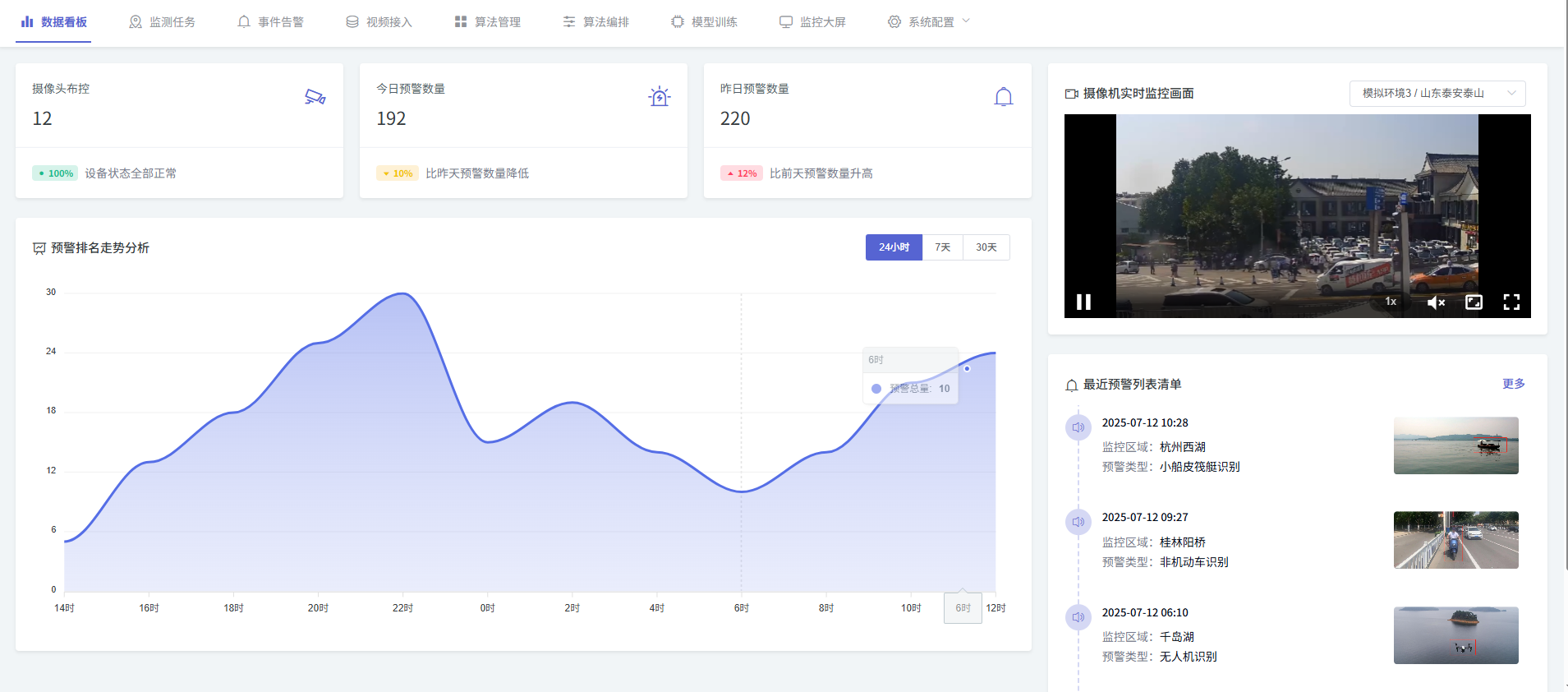 预警统计与走势:统计分析预警事件频次和类型,支持按时间段查看趋势,辅助用户决策