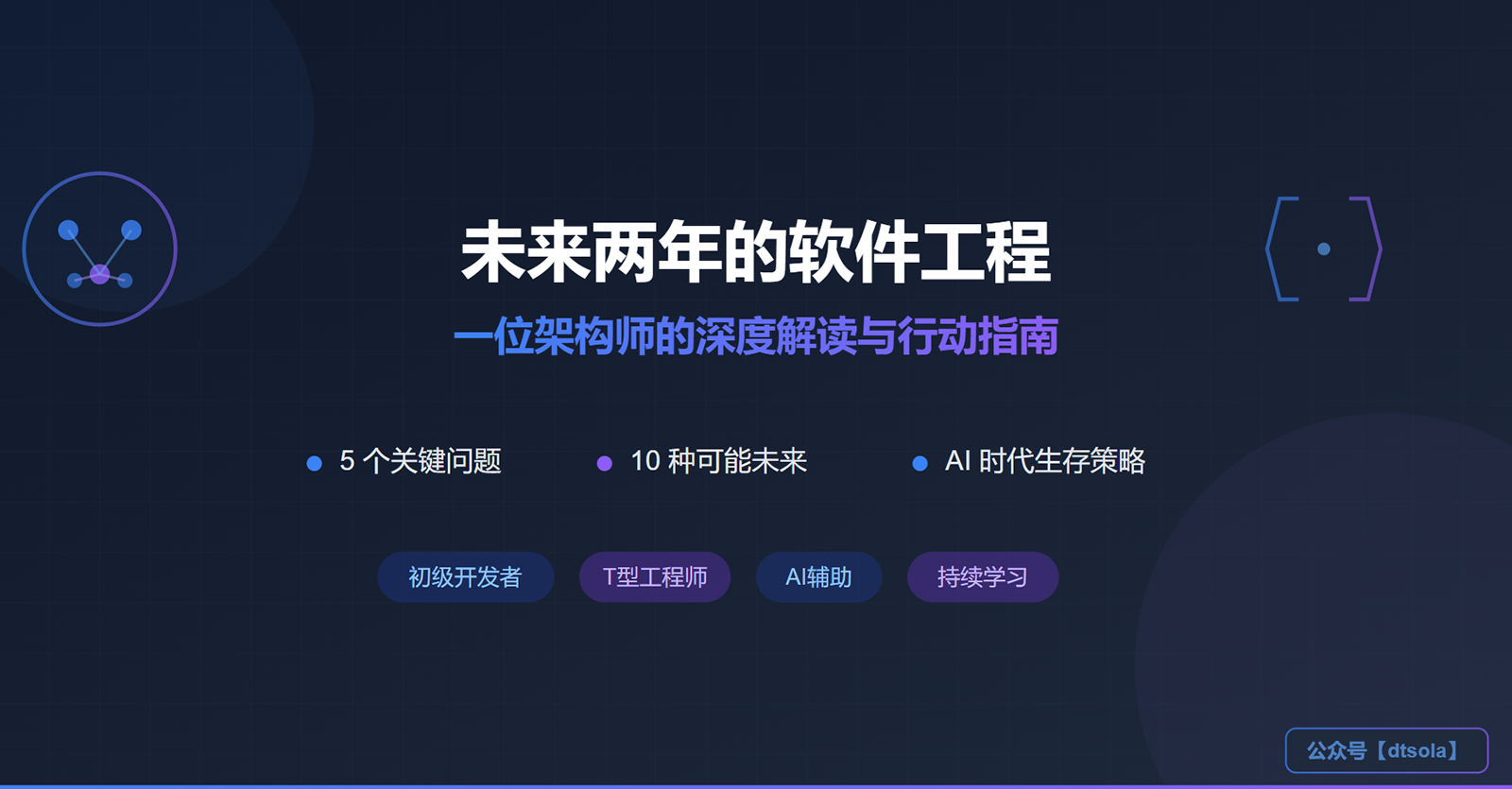 我是 dtsola ,作为一名 IT 解决方案架构师和一人公司实践者,我每天都在思考一个问题:在 AI 浪潮下,技术人员的价值究竟在哪里?