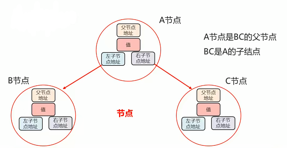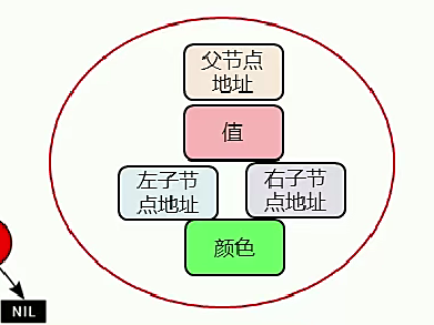 - 红黑树的每个节点由父节点地址、值、左子节点地址、右子节点地址、颜色五部分组成